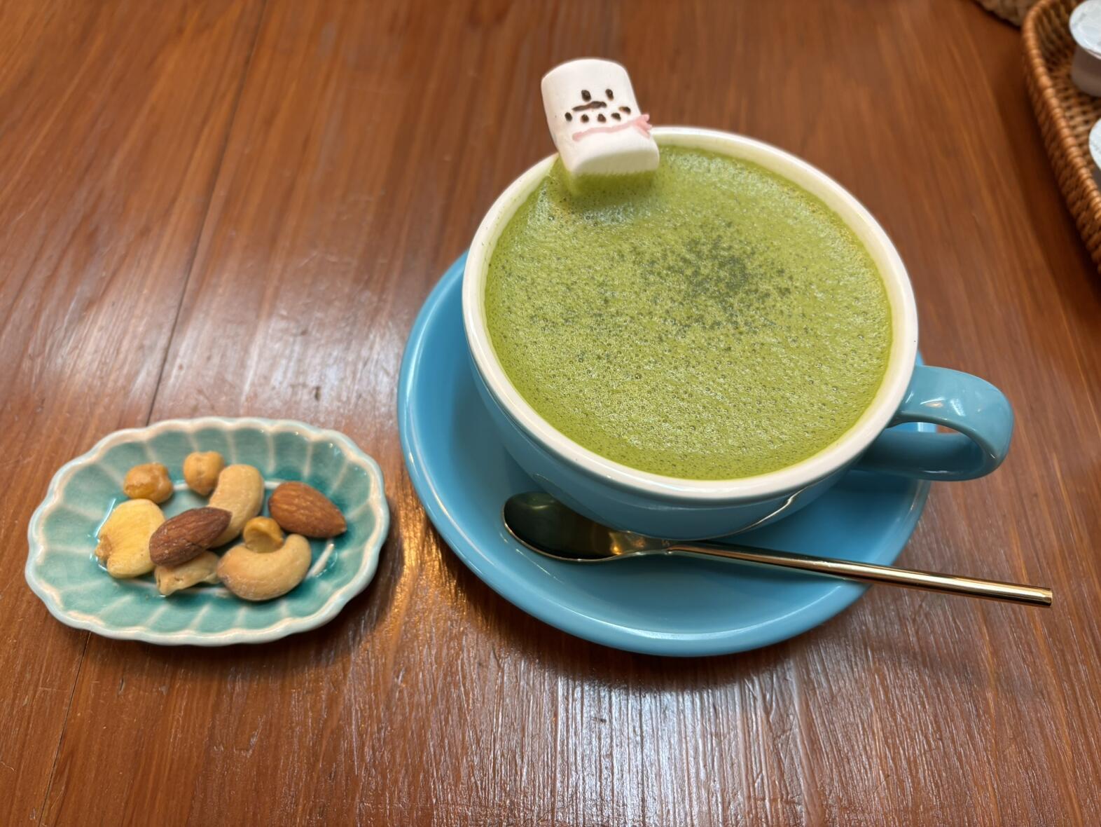 自宅から図書館への道の途中にあるハンバーガーが有名なカフェでは、抹茶ラテをいただきました。